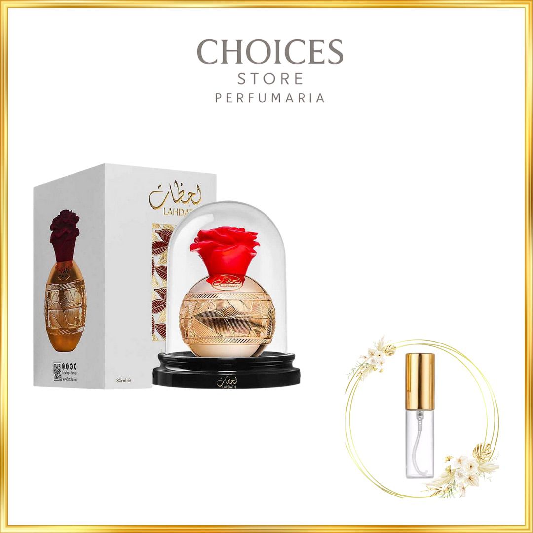 Lahdath de Lattafa Perfumes é um perfume Floral Amadeirado Almiscarado Compartilhável. Esta é uma nova fragrância. Lahdath foi lançada em 2022. O perfumista que assina esta fragrância é Kevin Mathys. As notas de topo são: Rosa e Limão. As notas de coração são: Rosa e Caramelo. As notas de fundo são: Baunilha, Almíscar e Cedro.