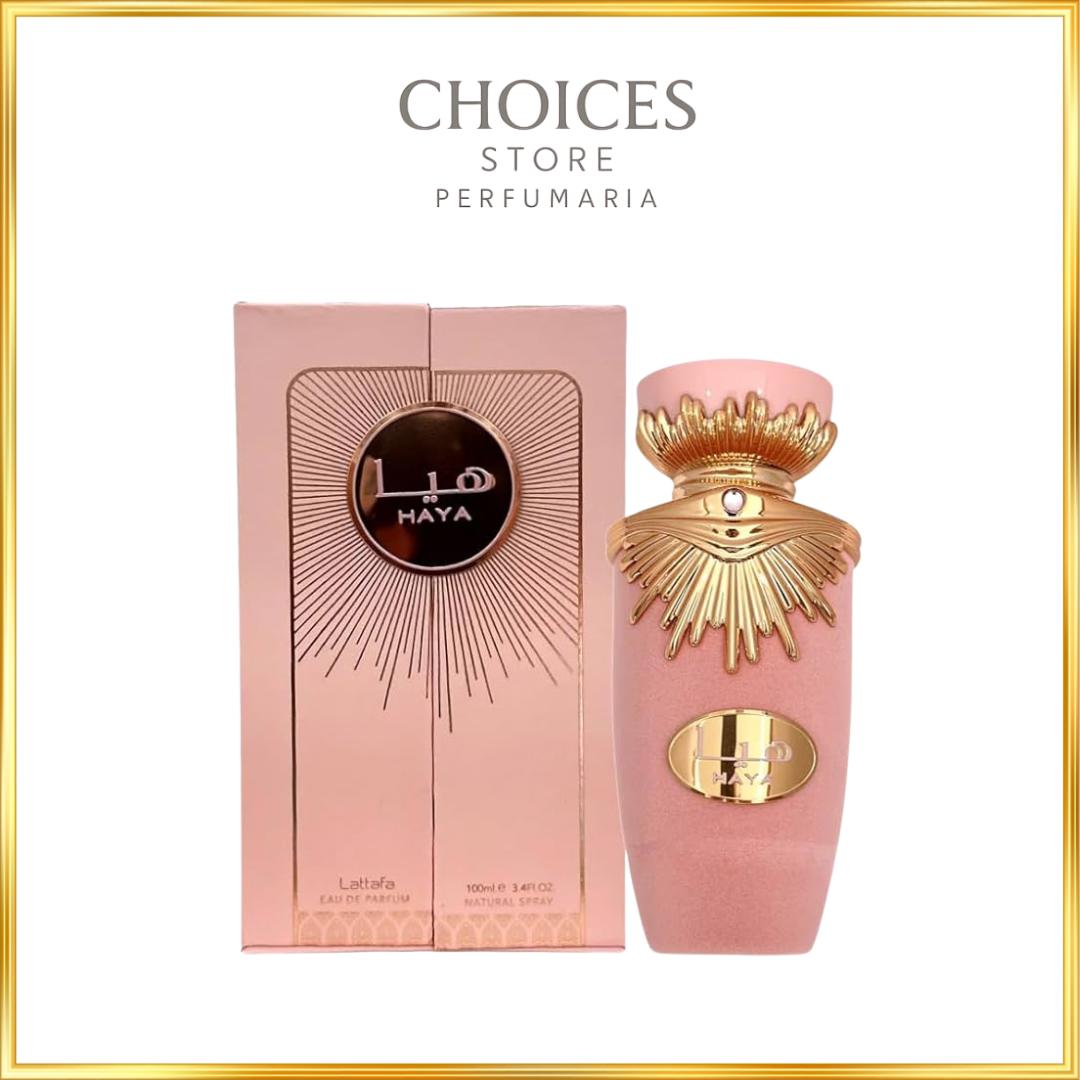 Haya de Lattafa Perfumes é um perfume Feminino. Esta é uma nova fragrância. Haya foi lançada em 2022. As notas de topo são: Champanhe, Morango, Tangerina, Laranja Sanguínea e Rosa. As notas de coração são: Gardênia, Jasmim e Orquídea Baunilha. As notas de fundo são: Âmbar, Sândalo e Castanha.