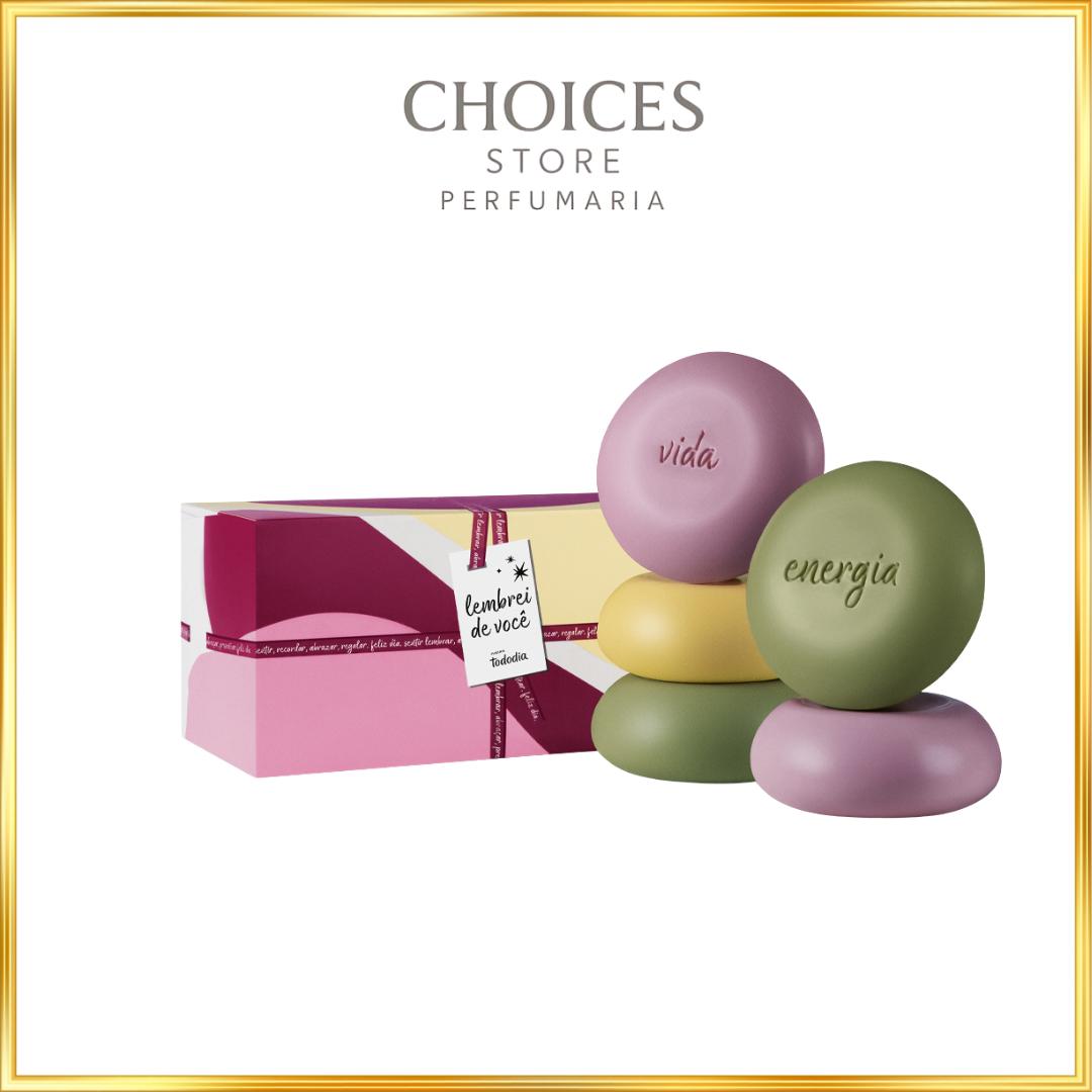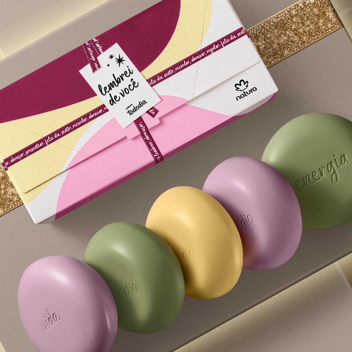 este Presente de Natura Tododia contém 5 sabonetes em barra de fragrâncias variadas. os sabonetes limpam a pele com espuma cremosa e abundante. sua fórmula gentil traz uma combinação de ingredientes de origem natural. perfeito para um banho revigorante.
